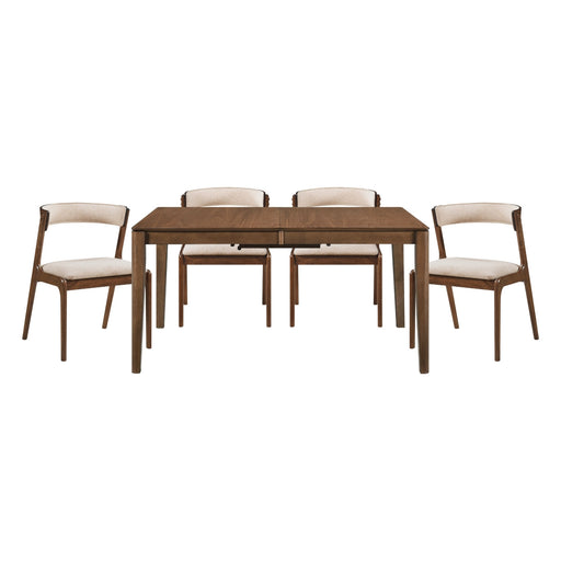Holverson Collection by Homelegance Rustic Brown finish Made of Acacia veneer and wood Separate extension leaf Table extends by pulling both ends...