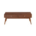 Providing functional use and retro-modern styling for your home is the Frolic Collection. The design of the cocktail table allows for the perfect placement within your home to accent your busy lifestyle. The brown finish combined with polished nickel knob hardware, drawer storage and a mid-century inspired profile, blend effortlessly to create this stylish table. Also available – cocktail table, end table, desk, standing desk, and home entertainment console. 48 x 24 x 18H