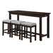 The elevated dining experience that the Connected Collection provides will fuel your device’s battery life while you fuel yourself. The convenience of built-in USB ports and A/C power turns your casual dining area into an efficient recharging station. The four-piece pack of the Connected Collection includes a counter height table and three barstools. A single drawer allows for discrete storage on the table’s side apron. As a neutral pallet for your decorative preference, the collection features an espresso finish over ash veneer, with the neutral gray tone of the barstool’s seats providing subtle accent. Table: 66.25 x 23.75 x 36.5H, Chair: 17 x 12 x 24.25H