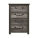 Subtle design characteristics lend hints of rustic, industrial and transitional aesthetics to the classic look of the Lenoir Collection. The gray finish of the melamine laminate’s faux wood lends durability to the rustic finish of the collection. Gunmetal-hued metal drop hardware fronts the drawers of the chest providing an industrial-inspired accent to the look of the collection.