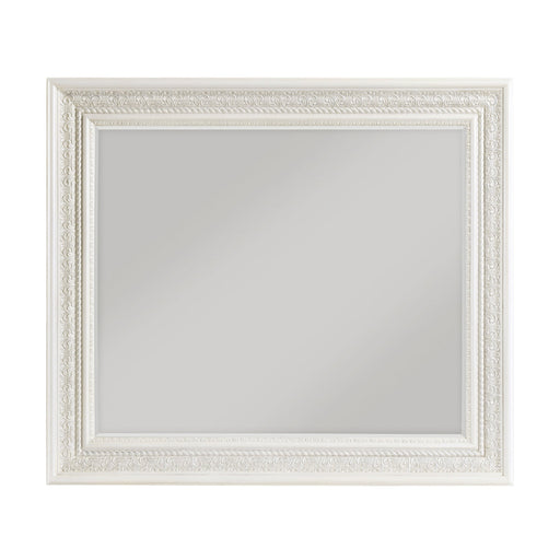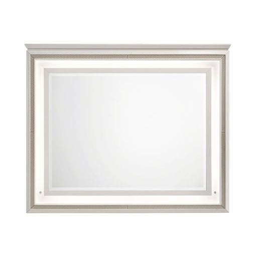 The unique styling of the Luster Collection presents a glamorous option for your bedroom. The mirror frame’s embossed faux-wood ve...