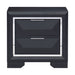 The modern design of the Rosemont Collection creates a striking profile for your bedroom. The midnight blue finish is reflected by the chrome banding that defines the front of the nightstand. Chrome pull hardware accents each of the raised drawer fronts. 27.5 x 17 x 26.5H