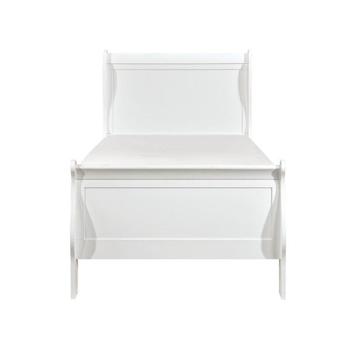 Mayville Collection by Homelegance Furniture White finish Sleigh headboard and footboard Distinct framing This bed requires a boxspring 41.5 x 84...